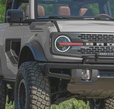 >Application. This Daytime Running Light Tint (Red) fits all 2021-2026 Ford Bronco with Factory LED Headlights.