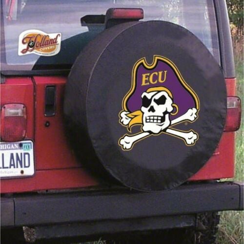 Show Off Your School Spirit. Put your school spirit on full display with this East Carolina University Black Spare Tire Cover. This spare tire cover features the officially-licensed East Carolina pirate logo set against the cover’s black background. This design gives your Ford a striking look. More importantly, this cover’s heavy-duty vinyl construction offers effective protection against scratches and dirt to keep your spare tire looking fresh.