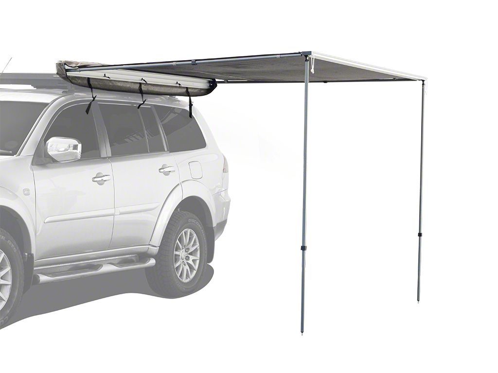 Description. Quick and easy two person set up, in under 60 seconds. Mounts quickly and easily to the side of your Front Runner Roof Rack for instant sun or rain protection. Water-repellent, UV-resistant awning measures 1.4m wide and extends 2.1m from mounting extrusion. Lightweight, yet durable vertical support poles have spikes on the end for secure ground placement and extend to 2.4m maximum height for use with taller vehicles. Telescopic aluminium twist lock uprights and rafter poles as well as aluminium rafters that ensure rigidity. Includes reflective guy lines with tent stakes for stability in windy conditions. Durable, heavy-duty PVC coated 650g nylon cover protects your awning while stowed and in transit. Universal mounting hardware included. For best mounting results on Front Runner Racks, upgrade to the Quick Release Awning Mount Kit or Easy-Out Awning Brackets. Folds into the main carry bag which can be left permanently attached to vehicle. Use the 3 mounting loops to secure the LED Light Strip / 1.2M to illuminate the space under the awning.