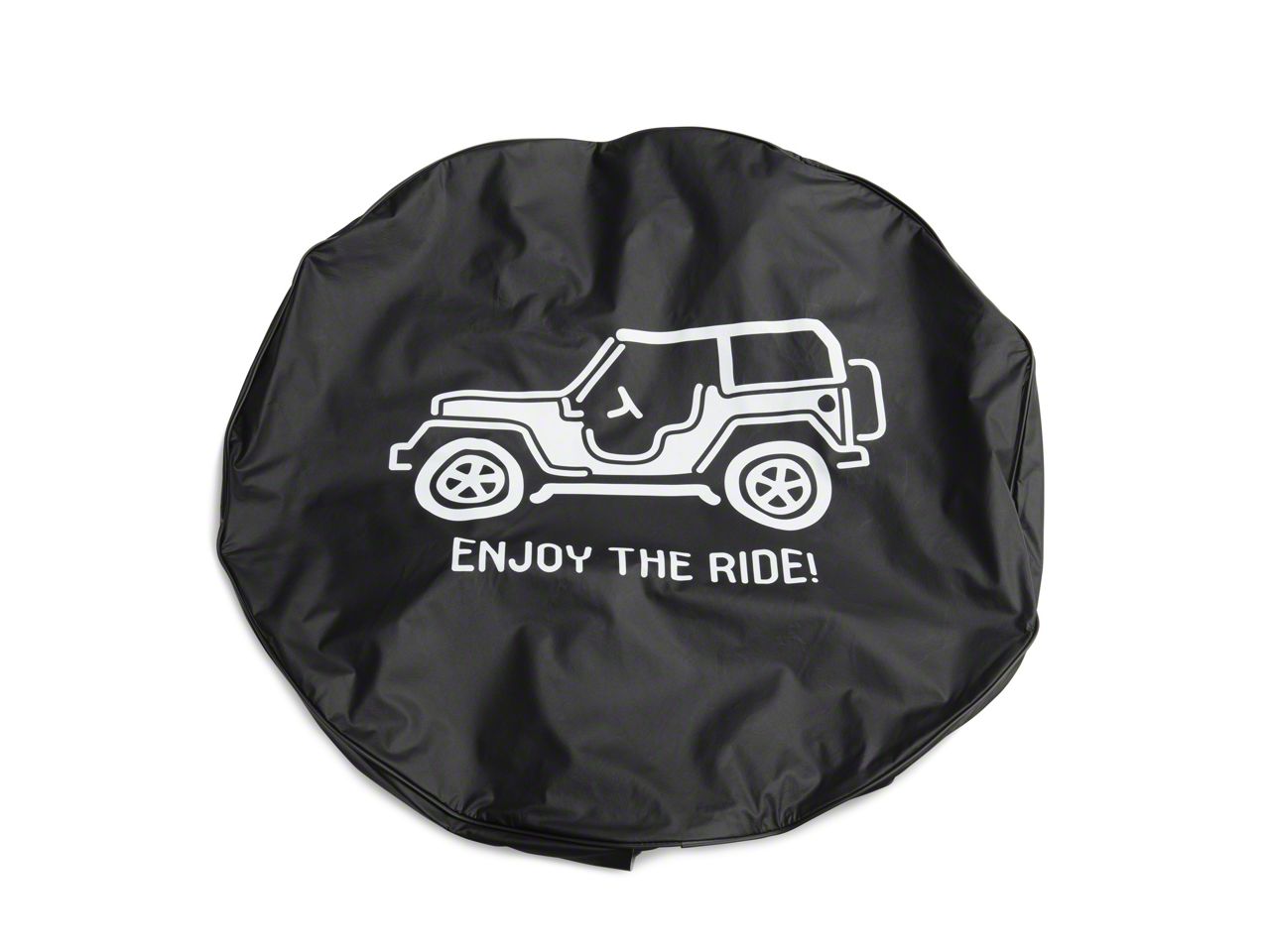 Superior Spare Tire Cover Replacement. Replace your damaged or worn-out spare tire cover with this Enjoy the Ride Spare Tire Cover. This tire cover features a Ford Bronco graphic and text that reads “Enjoy The Ride!” to give your vehicle an eye-catching style accent at its rear. What’s more, this cover’s high-grade vinyl construction and superior manufacturing methods provide your spare tire with excellent protection against dirt and damage.