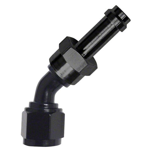 Description. EZ Street Push-On 45 Degree Hose End; -6AN; Black