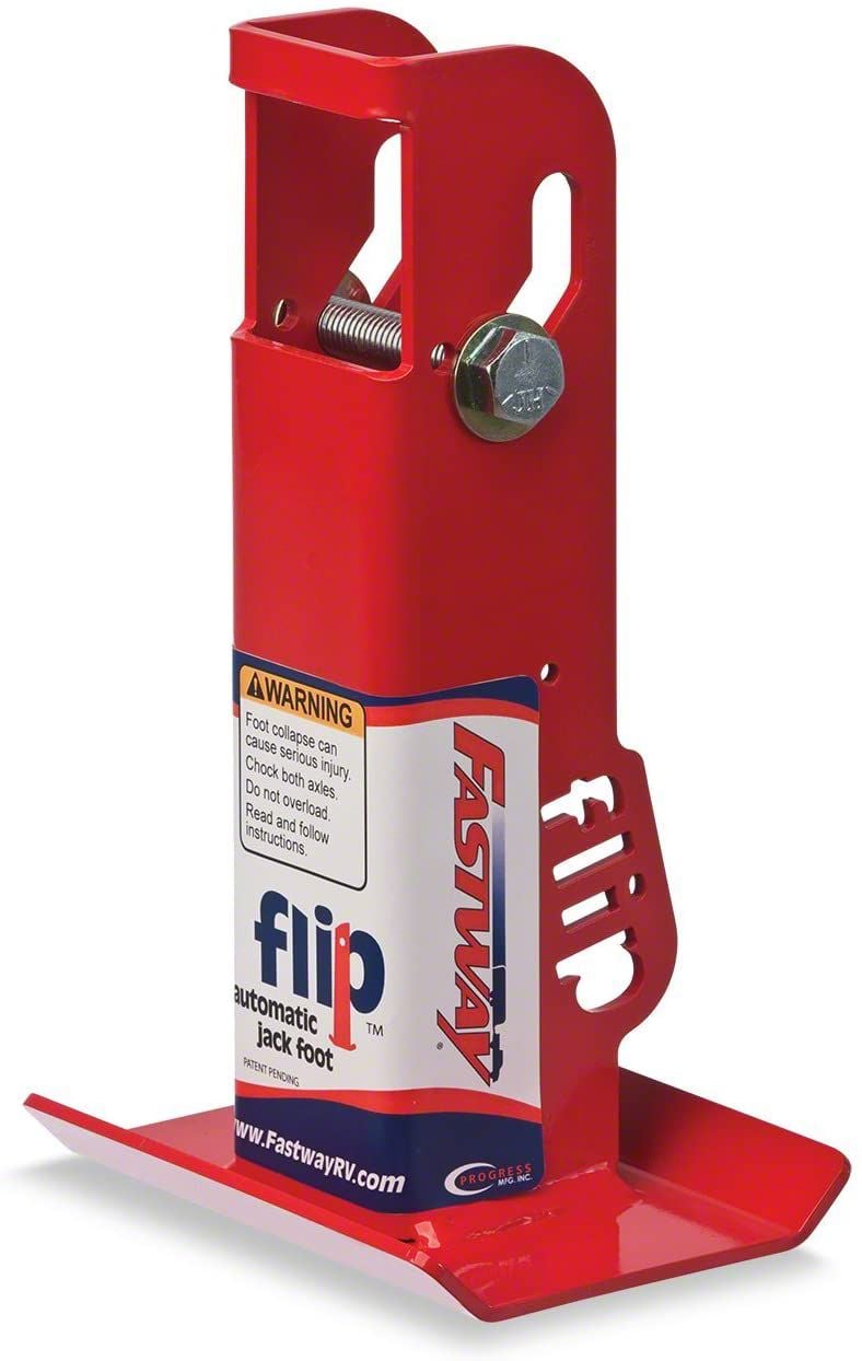Automatic Jack Foot. Never have to look for a rock or improvise in extending your trailer's jack foot with this FLIP Automatic Jack Foot; 6-Inch. You can rest easy as this Jack Foot is fully automatic and has a larger contact surface than most jacks making it ideal for maximum stability for your trailer vehicle. This FLIP Jack Foot can easily be removed for more clearance, and easily attaches back on like a breeze.