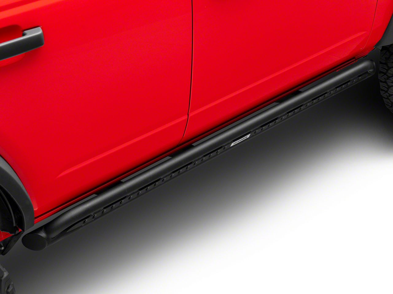 Stout and Long-Lasting. Furthermore, this 1-piece welded fabricated robust steel is given a textured black powder coat finish, which doubles its stoutness and longevity. Plus, they're compatible with all Bronco 4-Door models. So, if you're looking for a way to better safeguard your Bronco on the trails, pick up a set of our Frame Mounted Steel Rock Sliders today.
