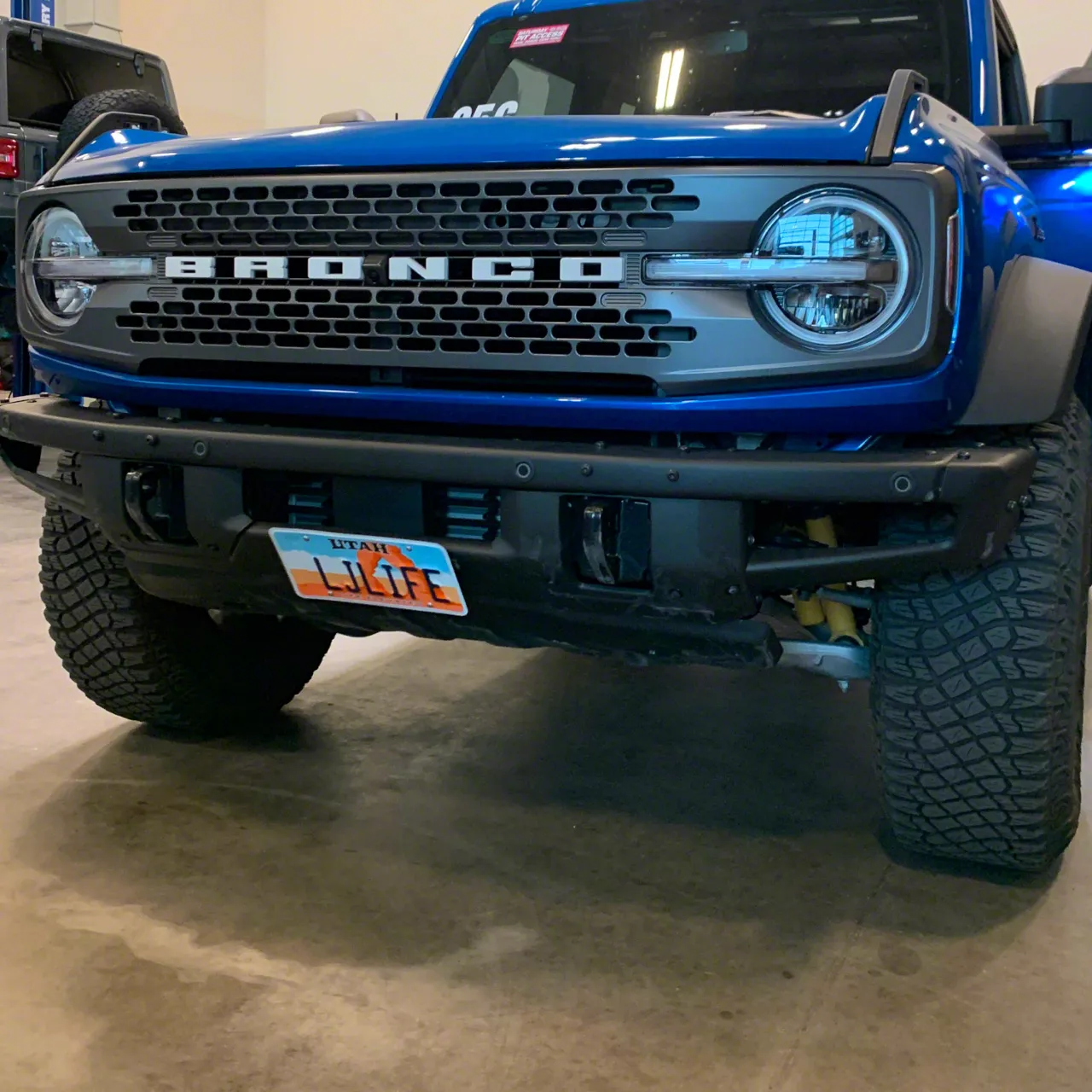 Durable and Low-Profile License Plate Mount. The Front Bumper License Plate Mount offers a robust, low-profile solution for securely mounting your license plate. Designed with vehicle-specific properties, this mount provides a perfect fit for your Ford Bronco while ensuring long-lasting performance in various conditions.