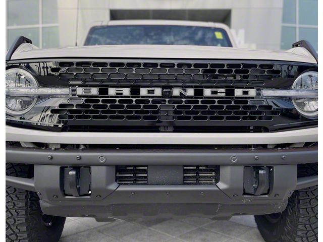 Application. This Front Grille Letters Overlays in Iconic Silver fits all 2021-2025 Ford Broncos (Excluding Raptor).