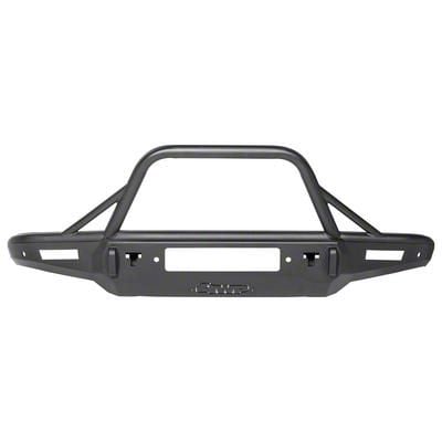 Engineered for Strength and Durability. Made from heavy-duty steel, this bumper has a black powder-coated finish that protects against corrosion, ensuring it withstands harsh elements. Its robust construction and additional bull bar offer a strong, durable solution for those looking to protect their vehicle’s front end during off-road adventures.
