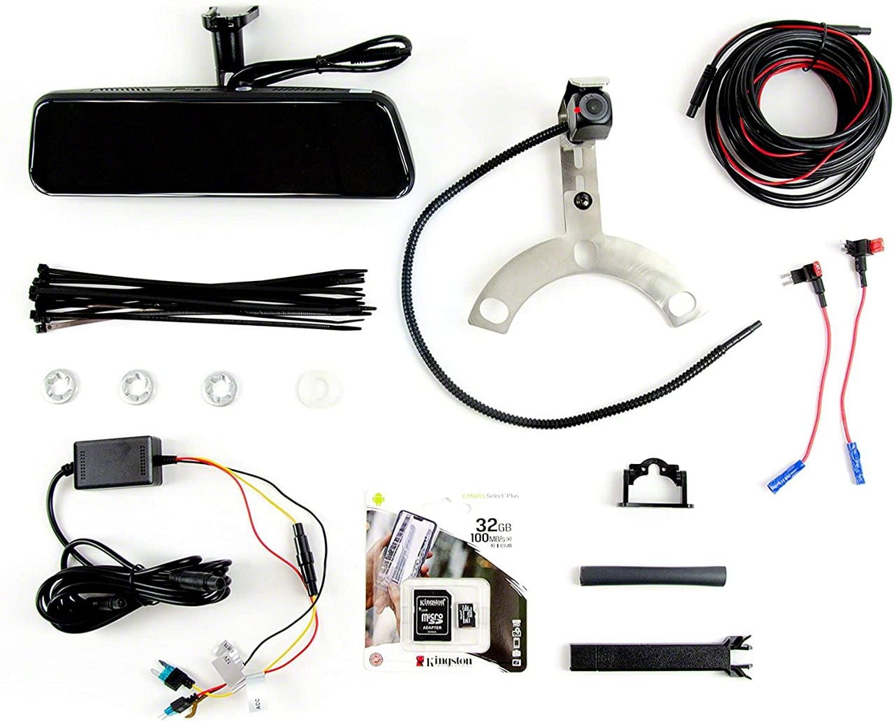 Crystal Clear. You can take advantage of its G-Shock Sensor and built-in DVR Recording Camera capabilities to keep you safe on the streets. The 9.66-inch mirror size works perfectly with its Anti-Glare Tempered Glass Screen, allowing you to enjoy crystal-clear visuals no matter the brightness of external light sources. With the included 32GB SD card option, storage worries are things of the past.
