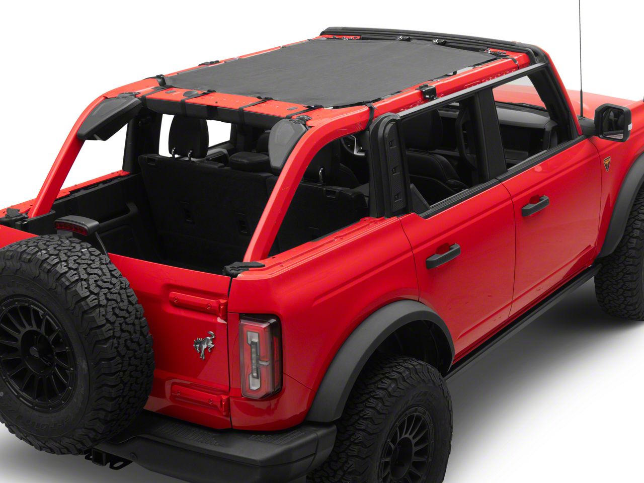 Application. This Mesh Sun Shade Top in Black fits all 2021-2026 Ford Bronco 4-Door models.