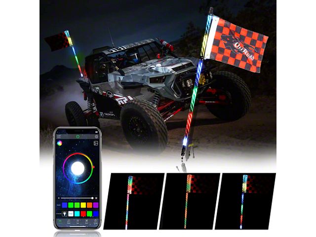 Application. This RGB LED Lighted Whip Antenna with Bluetooth Control offers a universal fitment.