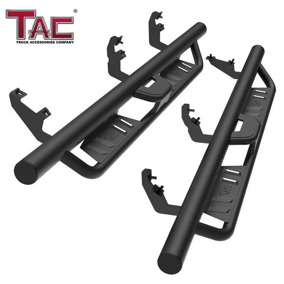 Construction and Features. Crafted for durability, these running boards feature a rust-resistant fine textured black finish, ensuring long-lasting performance in various conditions. The fixed step design provides a stable platform with a load capacity of 330 pounds each, making them reliable for heavy-duty use. Their design also enhances your vehicle’s protection by guarding the rocker panels against damage.