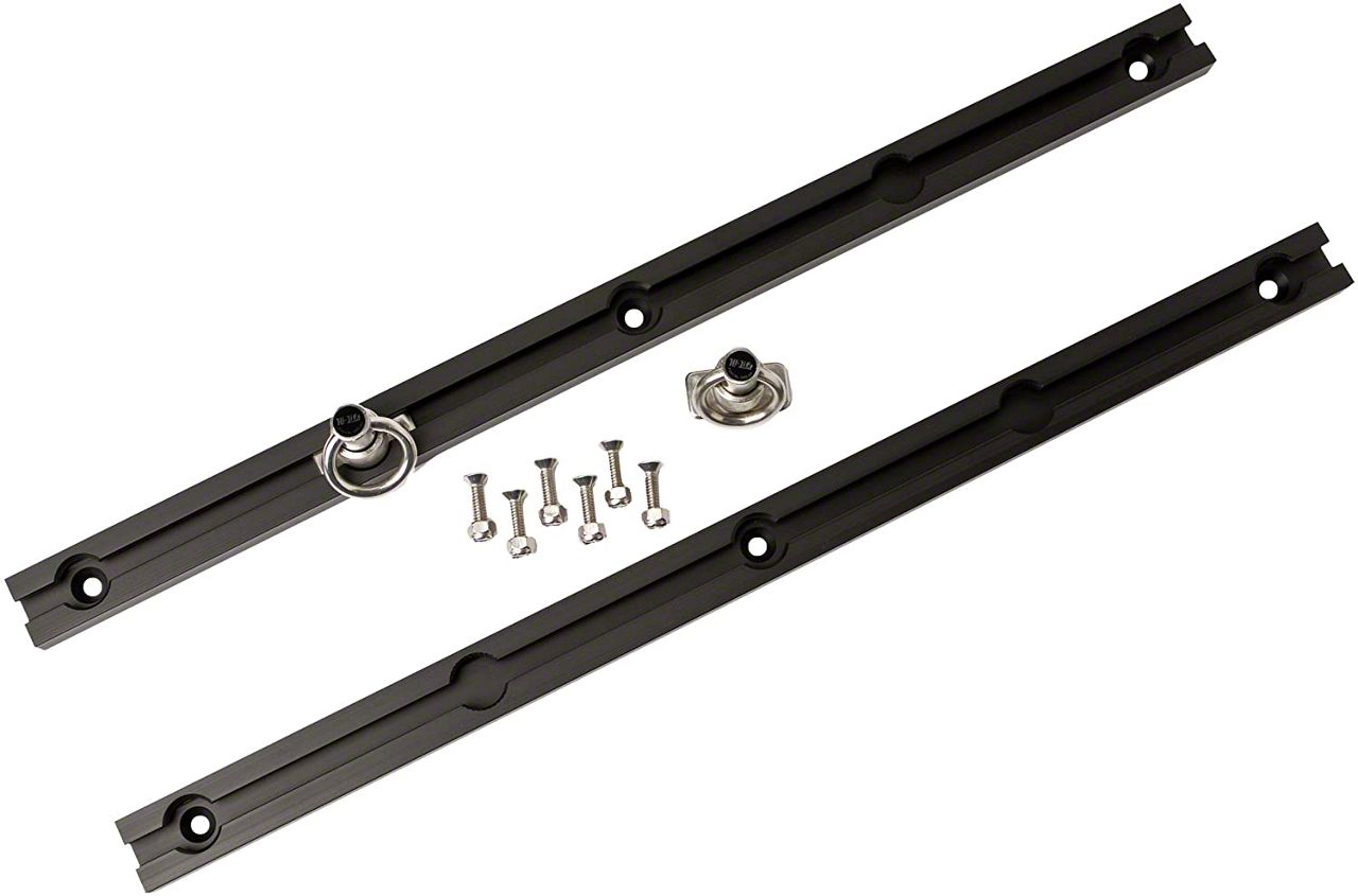 Application. This Slide-N-Lock Tie Down System (22-Inches Long, Black Anodized) fits universally and requires little adjustments.