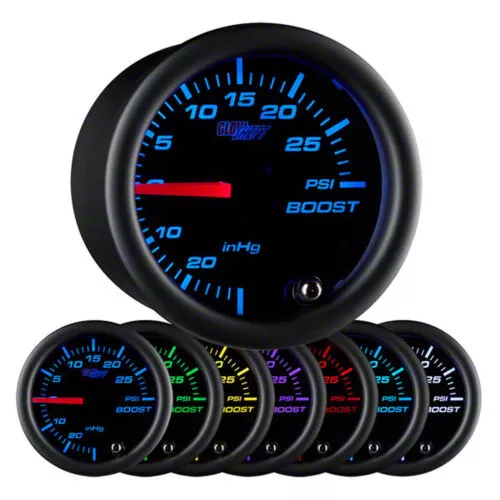 Boost/Vacuum Gauge. This Boost/Vacuum Gauge is a mechanically-operated 2-1/16-inch (52mm) turbo boost gauge that monitors your vehicle’s boost and vacuum levels from -30 inHG to 30 PSI. It features ultra-bright LED solid color modes that are customizable and dimmable, designed to seamlessly integrate with factory parts.