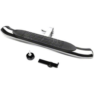 Resistant to Elements. Upgrade your vehicle with the versatile 4-Inch Oval Hitch Step, designed for 2-inch receivers. This universal hitch step is constructed from durable stainless steel, ensuring longevity and resistance to the elements. The polished finish adds an elegant touch, enhancing your vehicle's overall aesthetic. Installation is a breeze with a drilling-free, bolt-on design, making it accessible for all skill levels.