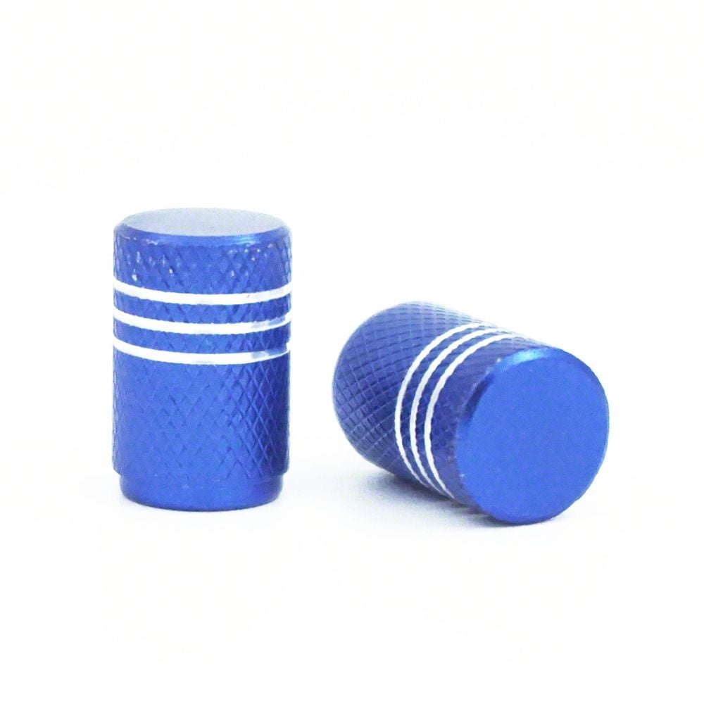 Application. This Schrader Style Aluminum Valve Stem Cap; Blue features a universal design and will fit most makes and models. Sold individually.