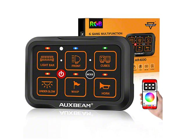 Premium Functional Design. The AR-600 RGB 6-Gang Multifunction Switch Panel with APP is a versatile and customizable control solution for various applications. With unlimited color options, it allows you to personalize your switch panel to match your vehicle's interior or your preferred aesthetic. It offers three mode settings: toggle, momentary, and pulsed, catering to different switch requirements.