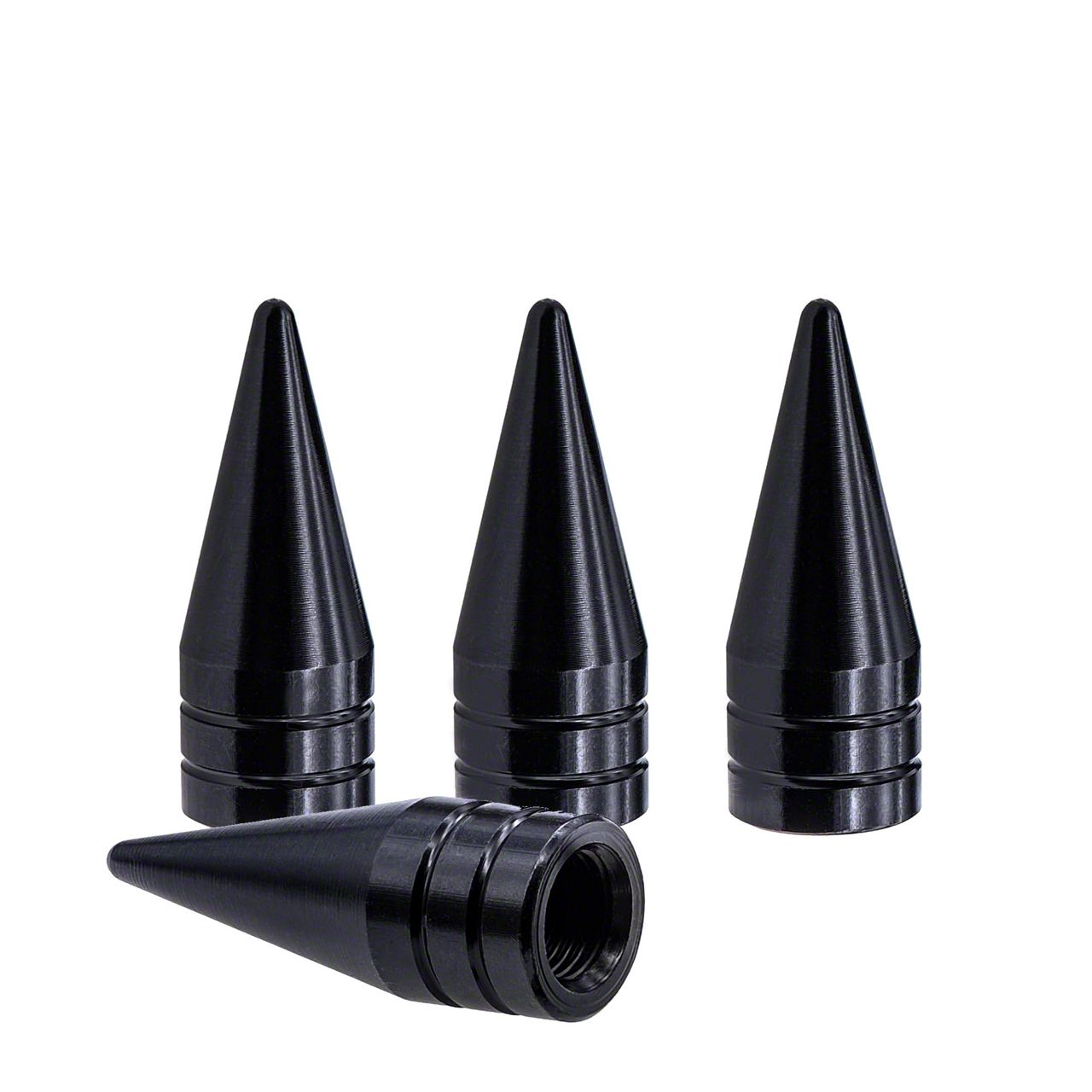Black Spike Valve Caps; 4-Pack