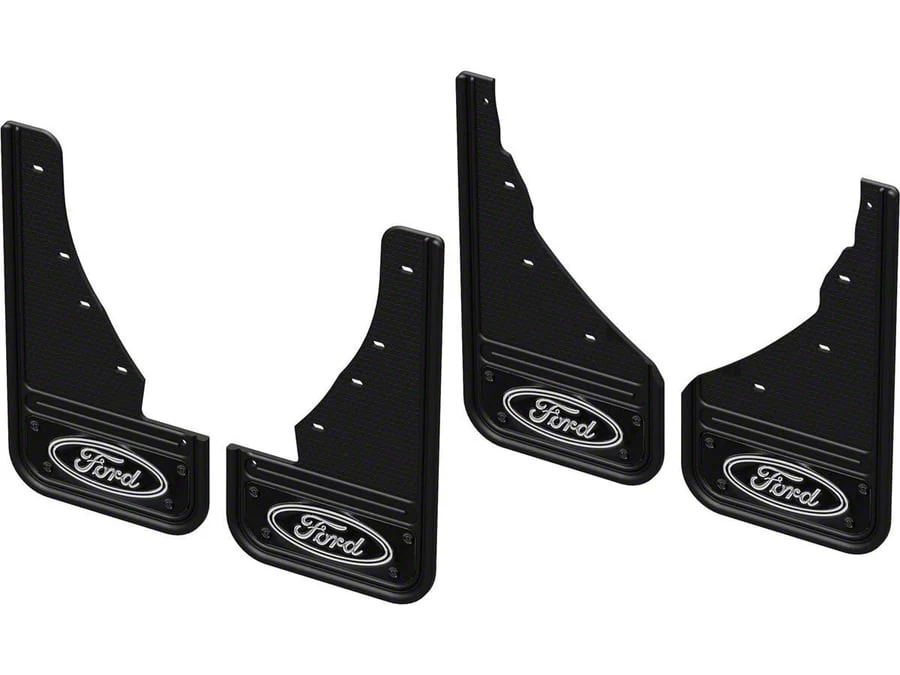 Black Wrap No-Drill Mud Flaps with Ford Oval Logo; Front and Rear (21-26 Bronco Sport)Find parts that fit my vehicle