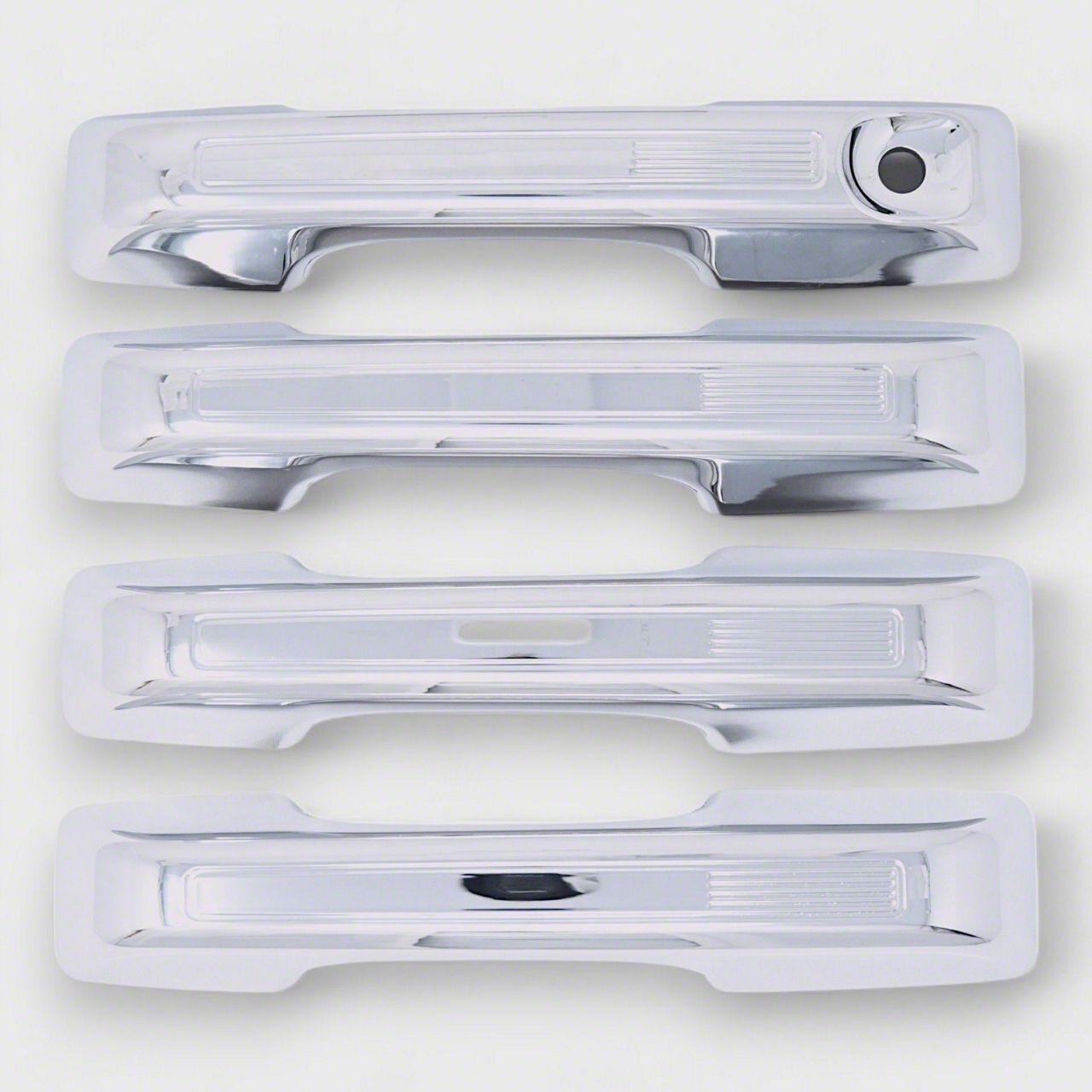 Patented Snap-On Design. The Door Handle Snap-On Covers; Chrome provide a sleek and stylish upgrade by effortlessly snapping over your existing door handles. They enhance your vehicle's exterior appearance while protecting and covering up any existing damage or fading on the factory handles.