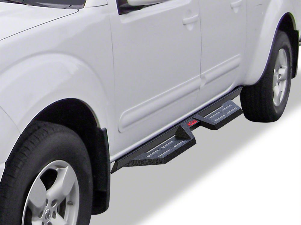 Construction and Design. Crafted from heavy-duty carbon steel, these side step bars are finished in matte black for a durable, aggressive appearance. The integrated non-slip step pads offer secure footing in all conditions, while the drop-step configuration provides comfortable access for both front and rear passengers. Their robust construction ensures dependable strength and long-term resistance to daily wear.