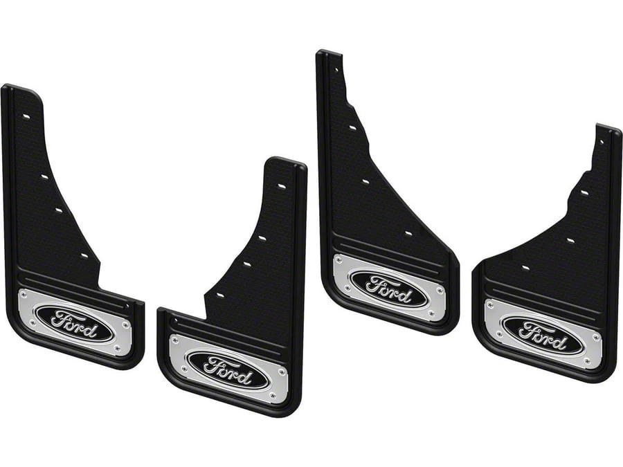 No-Drill Mud Flaps with Black Ford Oval Logo; Front and Rear (21-26 Bronco Sport)Find parts that fit my vehicle