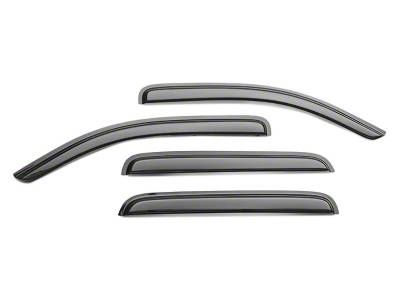 Tape-On Rain Guards. The Rain Guards Smoke provide effective protection against rain and wind while allowing ventilation inside the vehicle. This product helps reduce wind noise and deflects rainwater from entering through partially open windows, enhancing driver and passenger comfort in various weather conditions.