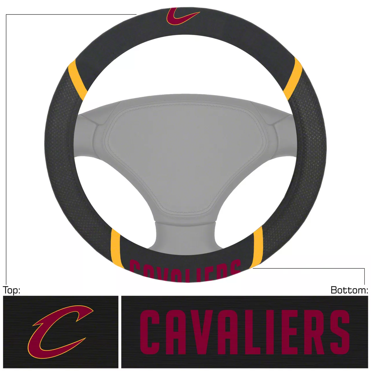 Steering Wheel Cover with Cleveland Cavaliers Logo; Black (Universal; Some Adaptation May Be Required)