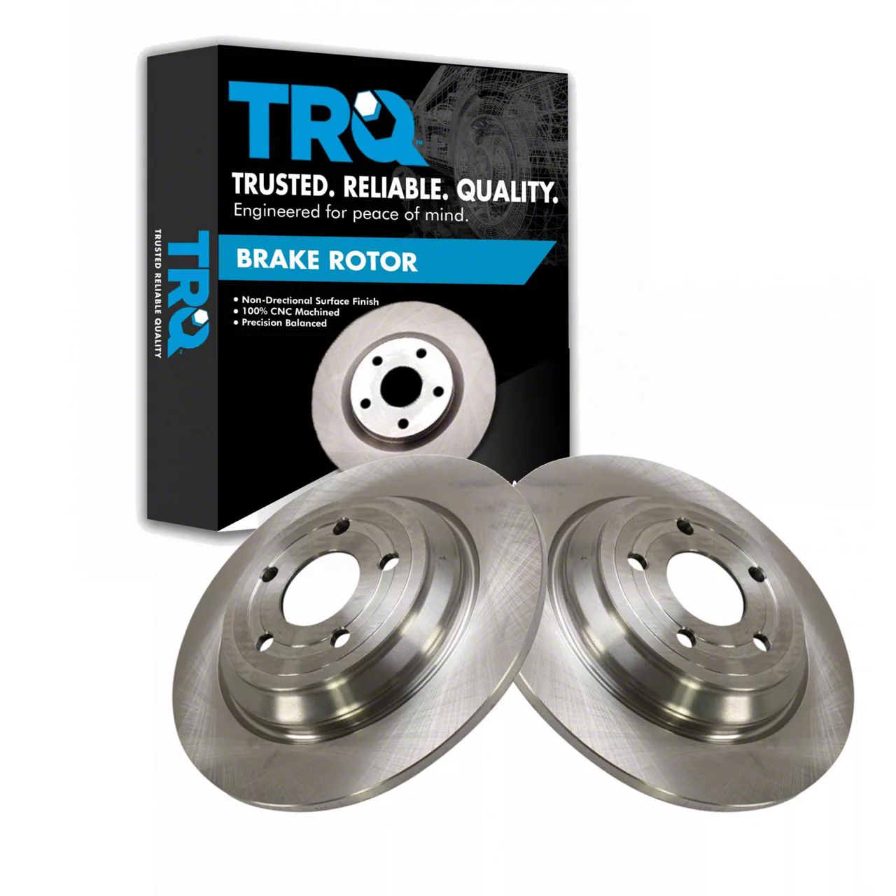 Premium Brake Rotor Set. The Vented 5-Lug Rotors; Rear Pair are designed to replace the rear brake rotors on vehicles. These rotors provide reliable stopping power and ensure smooth braking performance. Brake rotors are critical components that work in conjunction with brake pads to safely slow or stop the vehicle under diverse driving conditions.