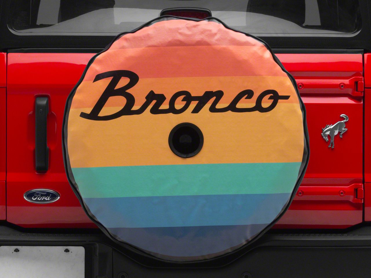Application. This Striped Vintage Bronco Spare Tire Cover is designed to fit 2021-2026 Ford Bronco models.