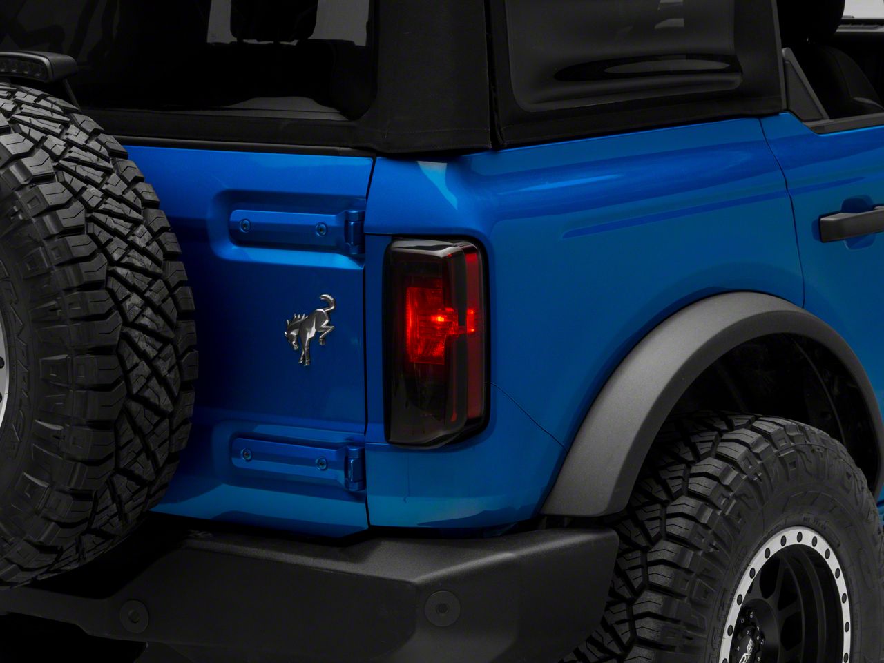 Application. The Tail Light Cover Black Out Kit offers 5 Pieces that cover your vehicle’s tail lights, marker light, and third brake light. It’s compatible with the 2021-2026 versions of the Ford Bronco with Factory LED Tail Lights, excluding Raptor model.