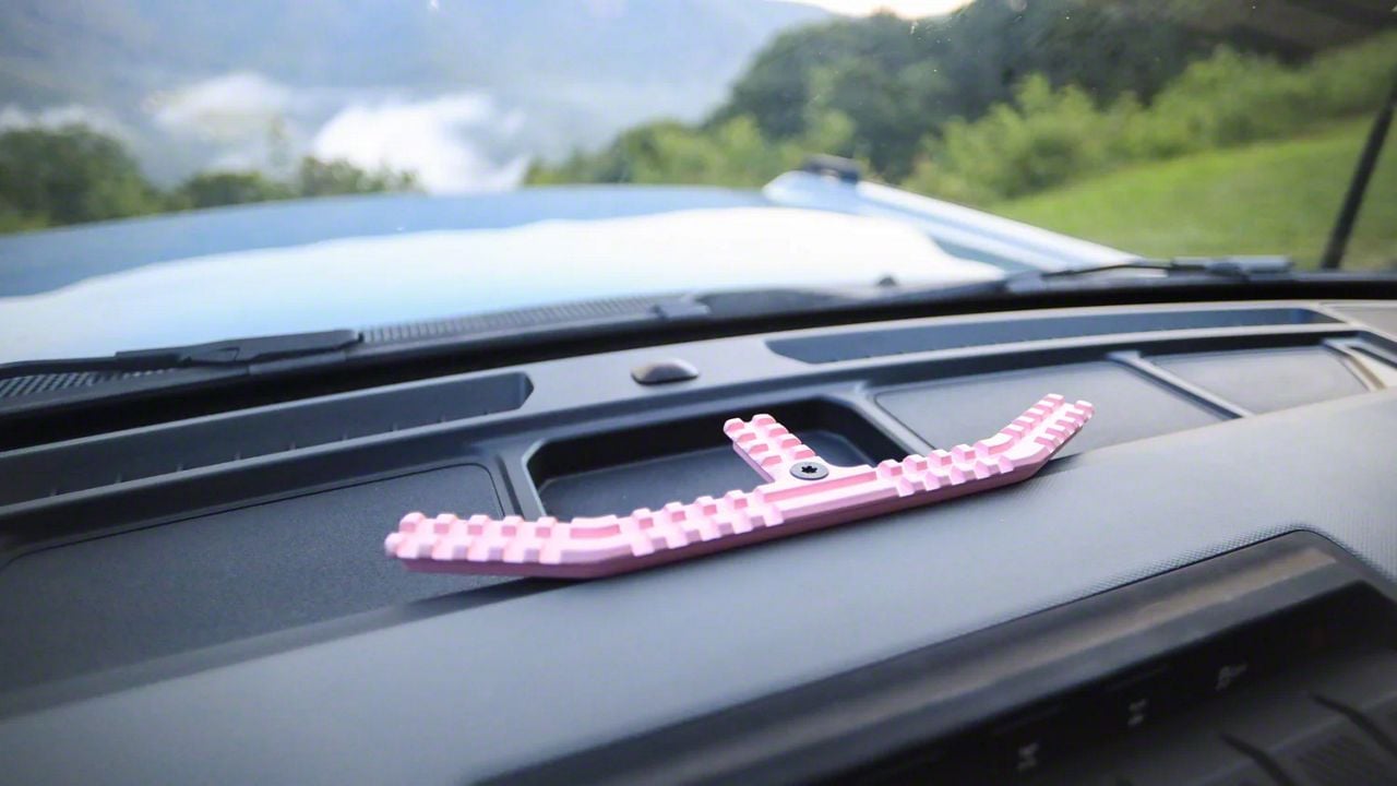 Construction and Appearance. The Dash Rail is constructed from a single piece and features a durable pink coating that not only ensures strength and longevity but also adds an eye-catching aesthetic to your vehicle's interior.