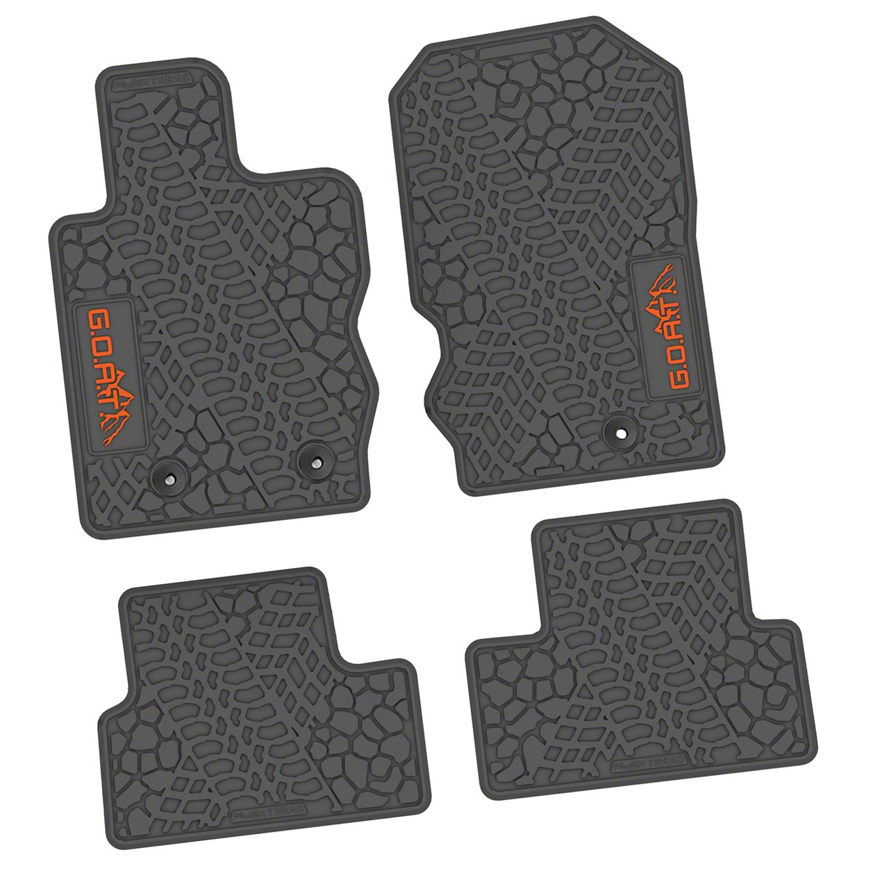 Factory Floorpan Fit Tire Tread/Scorched Earth Scene Front and Rear Floor Mats with Orange GOAT/Mountain Insert; Gray (21-25 Bronco 2-Door)Find parts that fit my vehicle