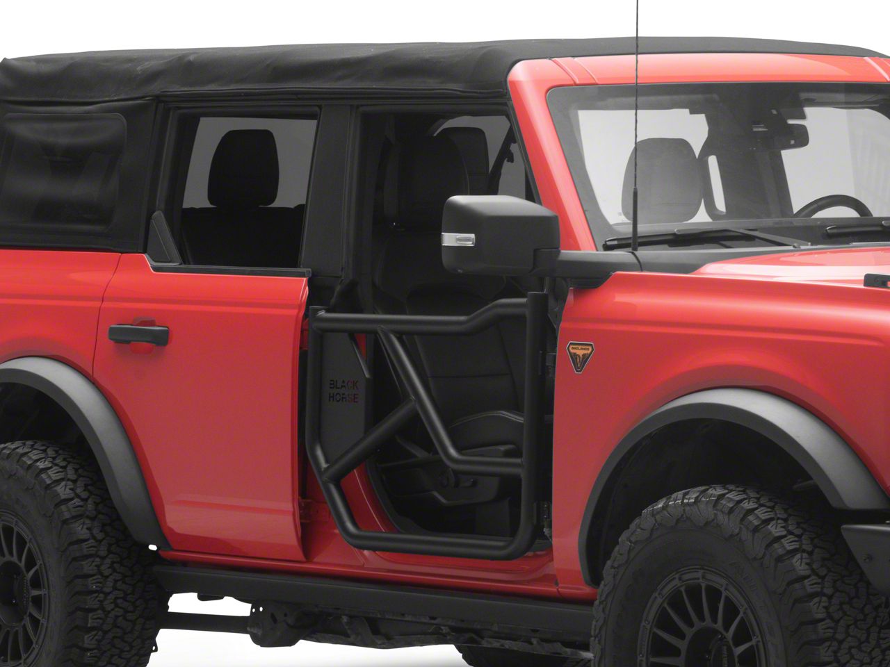 Application. The Tubular Front Doors; Black fits 2021-2025 Bronco models.