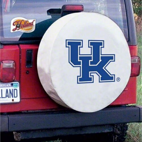 Go Wildcats. Celebrate your Alma Mater’s athletic team while keeping your spare tired protected with the University of Kentucky UK Spare Tire Cover in White. The cover features the blue “UK” logo in crisp white vinyl for that head-turning appeal. Best of all, this is a practical accessory that can prevent corrosion from damaging your spare tire so you’re always ready when you need it to replace your damaged of blown up main tires.