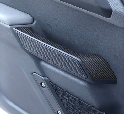 Elegant Interior Upgrade. The Upper Door Pull Handle Accent Trim provides a sleek and stylish enhancement for your 2021-2025 Bronco models. With a raw carbon fiber finish, these trims add a touch of luxury and sophistication to your vehicle’s interior, making it stand out with a modern and refined look.