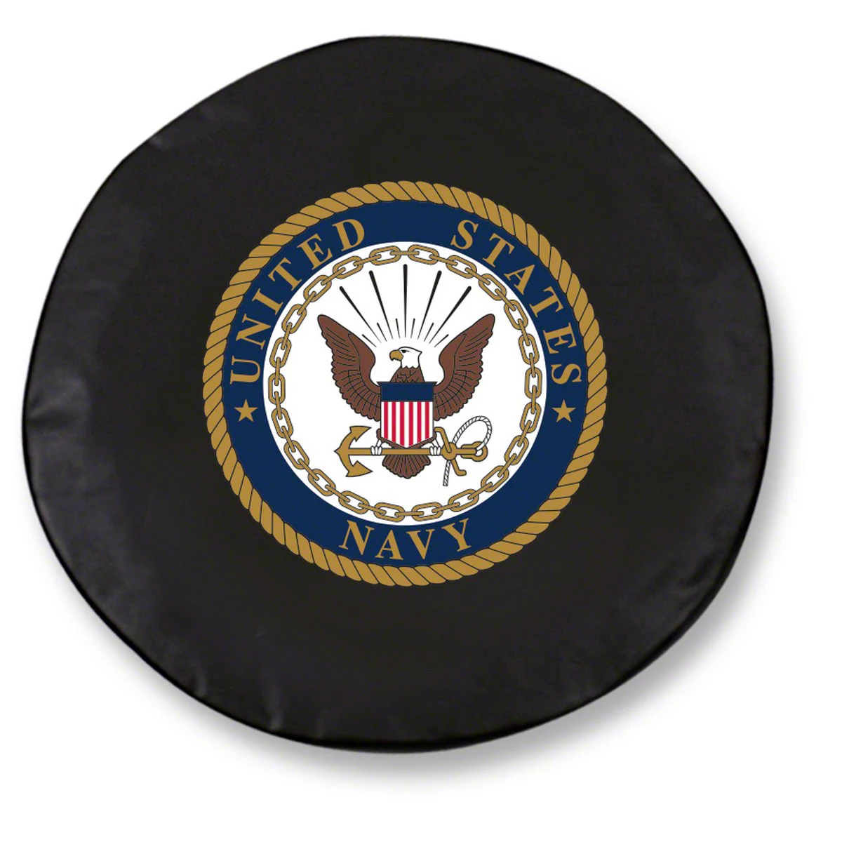 Offers Proper Spare Tire Protection. This Black U.S. Navy Spare Tire Cover helps to properly protect your spare tire from harsh weather elements and road debris. With its durable vinyl fabric build, no water, UV rays, snow, or dirt will be able to penetrate and damage your spare tire. Plus, this cover adds some style to your Ford’s rear since it bears a vibrant U.S. Navy logo which is printed using UV-resistant inks to prevent it from easily fading.