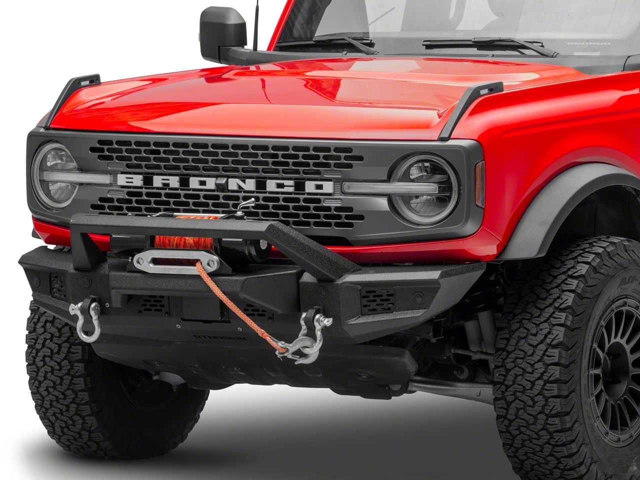 Heavy-Duty Front Protection. This Front Bumper offers robust protection for your 2021-2026 Bronco. Its winch-ready design and full-width coverage ensure that your vehicle is shielded from bumps, hits, and other potential damage encountered during off-road adventures or everyday driving. The bumper is also compatible with 22-inch light bars and D-rings, adding to its versatility and functionality.