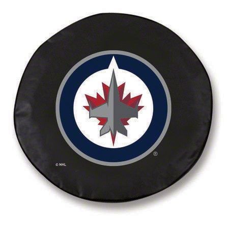 Rugged Build Quality. This spare tire cover’s weather-resistant commercial-grade black vinyl construction makes it both durable and stylish. Additionally, expertly crafted bead-welt seams further provide this cover with strength as well as a clean look. Similarly, a high-quality elastic band is incorporated into its backing, providing a snug fit, particularly with right-sized tires. Lastly, the officially licensed Winnipeg Jets logo is applied using a specialized multi-step screen-printing technique and UV-resistant inks. The result is a look that won’t fade for years.