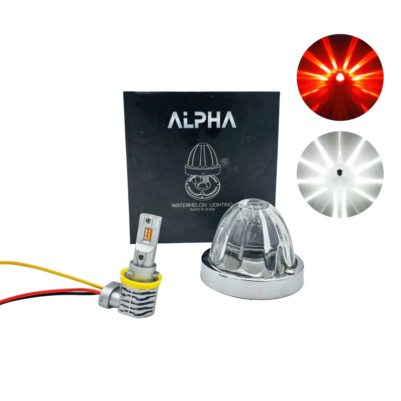 Glass is Class Duo Watermelon Lights β Red/White are the ultimate dual-color LED truck lights for show rigs, custom builds, and off-road use. These are not SAE/DOT compliant and are designed for non-road applications only, due to their extreme brightnessβeven when using amber or red. Featuring a real glass lens and custom H11 LED bulb, these lights produce a vivid starburst beam pattern that enhances your rigβs presence with unmatched clarity and glow.