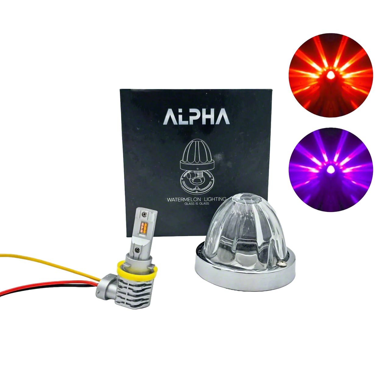 Dual-Color Retro LED Upgrade. The BTS Lighting Alpha Series Glass is Class Dual-Color LED Star Watermelon Light combines vintage aesthetic appeal with modern lighting performance. Featuring a true glass lens with a starburst pattern and dual-color LED functionality, this light outputs a vivid 5,500 lumens with seamless transitions between red and purple modes, making it a standout addition for show trucks, work rigs, and custom builds.