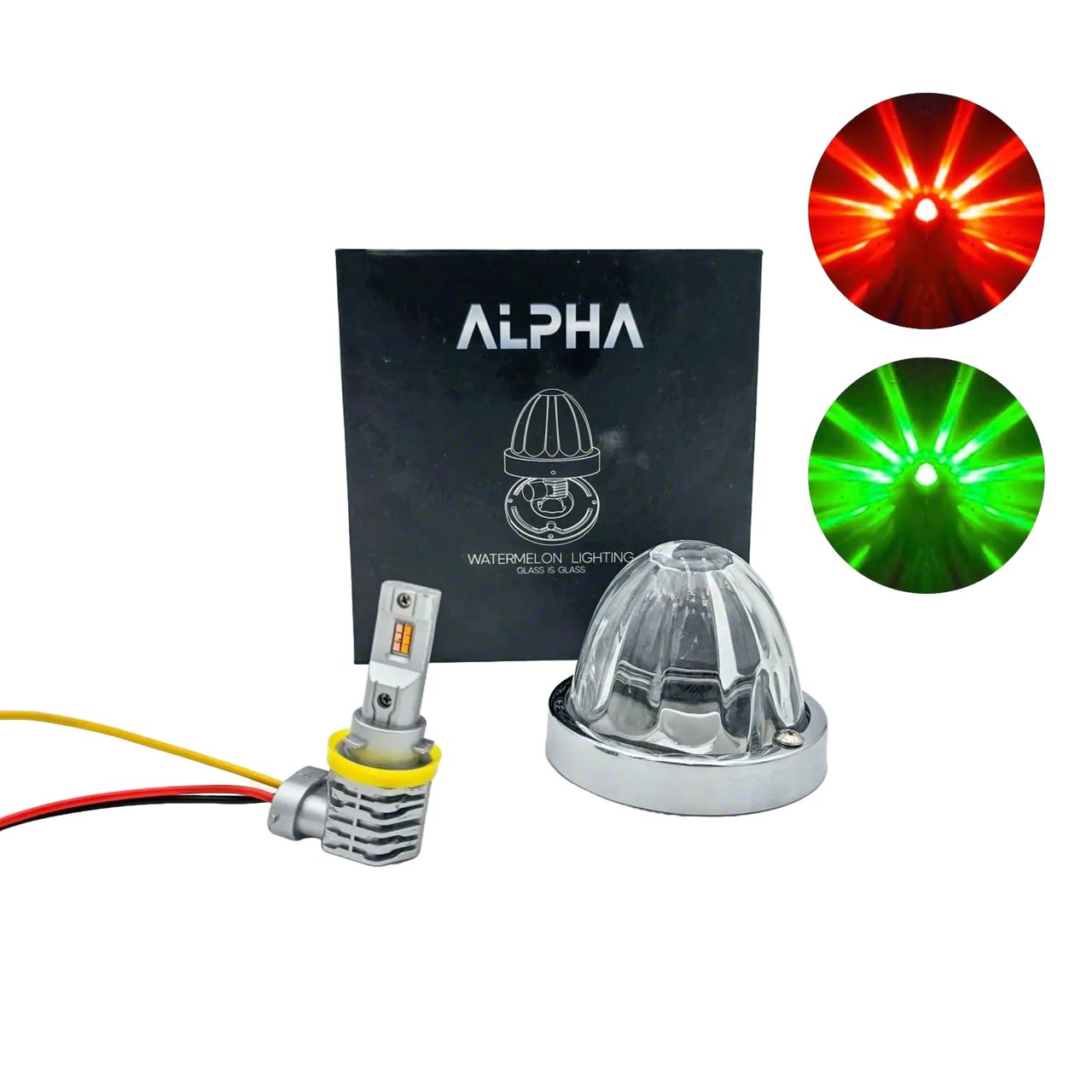 Glass is Class Duo Watermelon Lights β Red/Green are the ultimate dual-color LED truck lights for show rigs, custom builds, and off-road use. These are not SAE/DOT compliant and are designed for non-road applications only, due to their extreme brightnessβeven when using amber or red. Featuring a real glass lens and custom H11 LED bulb, these lights produce a vivid starburst beam pattern that enhances your rigβs presence with unmatched clarity and glow.