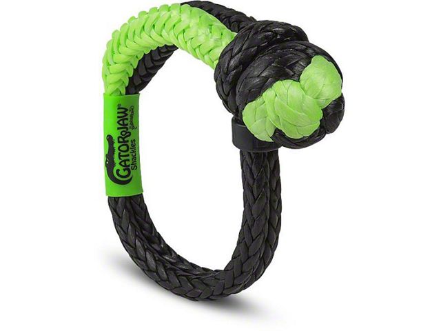 Description. The Bubba Rope's NexGen PRO Gator-Jaw® synthetic soft shackle is lightest and strongest 1/2" diameter synthetic soft shackle ever made. The unique design has eliminated all rope-weakening-splices found in other cheap soft shackles. The locking loop incorporates a flexible tough epoxy rubber slider that slips over a patented designed knot making a strong closed connector. The new slider is made from tough rubber epoxy giving it the strength and stretch to hold up to the wear and tear of off-road recovery.