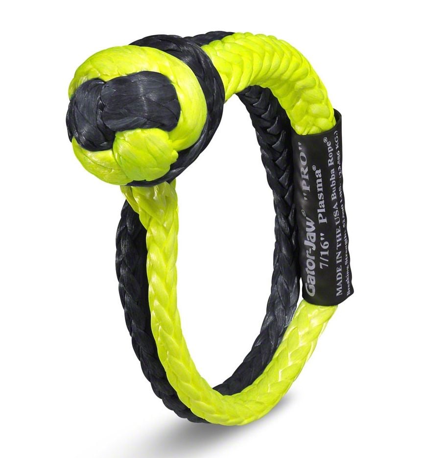 Stronger Than Steel. This Bubba Rope 7/16-Inch Gator-JawPro Yellow/Black Shackle offers extraordinary power for potential recovery operations. Stronger than steel, this shackle has a breaking strength of 52,300 pounds.