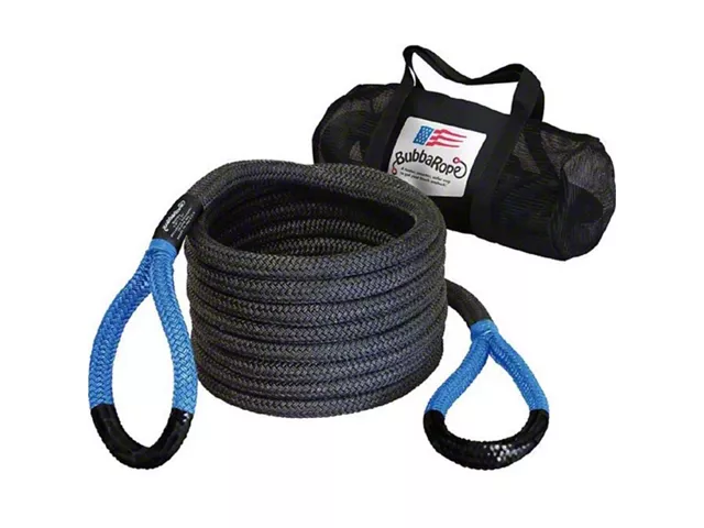 Description. Includes Bubba Rope’s original award winning 7/8" diameter Power Stretch® Recovery Rope and matching NexGen Gator-Jaw® synthetic soft shackles. The Power Stretch Rope with vinyl armor Gator-ized coatings comes in 20' or 30' lengths. The set also includes a heavy-duty mesh duffle gear bag for easy carrying and storing. This is the gear set that started it all, setting the bar for dynamic off-road recovery gear. Copied but never duplicated, Bubba’s Off-Road Recovery Gear is 100% made in the USA with unmatched quality. With a certified a breaking strength of 28,600 lbs. the gear set is ideal for vehicles weighing 5,000 – 7,000 lbs. Everything you need for a faster, smarter, safer way to get your truck unstuck.