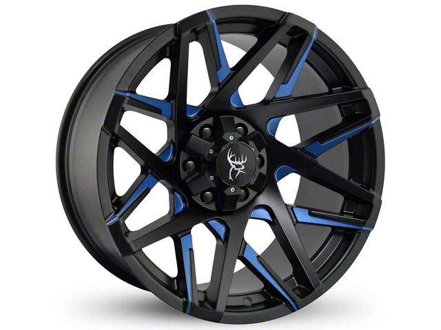 Buck Commander Canyon Satin Black Milled Face with Blue Clear Wheel; 20x9; 0mm Offset. Enhance your vehicle's look with the Buck Commander Canyon Satin Black Milled Face with Blue Clear Wheel. This premium wheel adds a touch of elegance and class to your vehicle, complementing its sophisticated aesthetic.