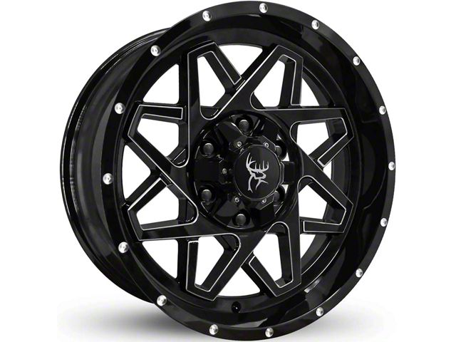 Buck Commander Gridlock Gloss Black with Milling Wheel; 20x9; -10mm Offset. The Buck Commander Gridlock Gloss Black with Milling Wheel offers a striking balance of style and refinement. Its unique design accentuates the vehicle's aesthetic, while the premium construction underscores its robust nature. This wheel is a perfect choice for those seeking both elegance and a strong visual statement.