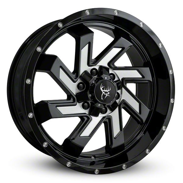 Buck Commander SAW Gloss Black Milled Face 6-Lug Wheel; 22x12; -44mm Offset delivers a bold and modern aesthetic, ideal for enthusiasts seeking a refined yet assertive look for their vehicle. With its standout design and distinct finish, this wheel enhances the vehicle's visual stance and street presence. The precise craftsmanship and premium aluminum build reflect Buck Commander's dedication to quality and distinctive design. Whether parked or in motion, this wheel draws attention with its clean, aggressive styling.