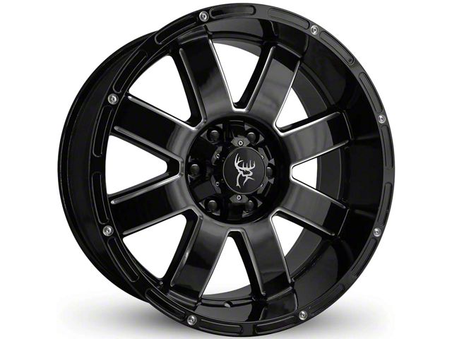 Buck Commander 8 Point Gloss Black Milled Edges Wheel; 20x9; -12mm Offset. The Buck Commander 8 Point Gloss Black Milled Edges Wheel offers a striking balance of style and refinement. Its unique design accentuates the vehicle's aesthetic, while the premium construction underscores its robust nature. This wheel is a perfect choice for those seeking both elegance and a strong visual statement.