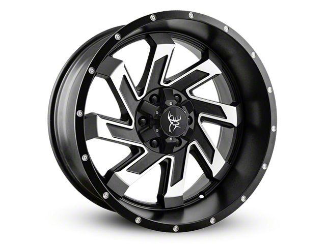 Buck Commander SAW Satin Black Machined Face Wheel; 20x10; -25mm Offset. The Buck Commander SAW Satin Black Machined Face Wheel offers a striking balance of style and refinement. Its unique design accentuates the vehicle's aesthetic, while the premium construction underscores its robust nature. This wheel is a perfect choice for those seeking both elegance and a strong visual statement.