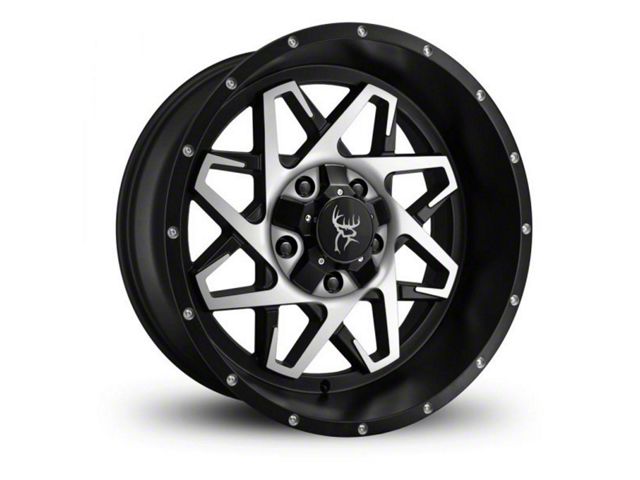 Buck Commander Caliber Satin Black Milled Face 6-Lug Wheel; 20x10; -25mm Offset exudes sophistication with its finish, offering a sleek and modern appeal to any vehicle it adorns. The design is meticulously crafted to enhance the aesthetic of your vehicle, giving it a distinctive and upscale look. Perfect for those seeking to elevate their vehicle's style, this wheel blends seamlessly with both contemporary and classic vehicle designs, making it a versatile choice for a wide range of vehicles. Its robust construction ensures durability, making it a reliable choice for drivers who value both style and quality.