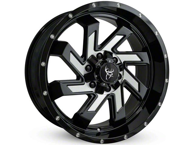 Buck Commander SAW Gloss Black Milled Edges Wheel; 22x10; -10mm Offset exudes sophistication with its finish, offering a sleek and modern appeal to any vehicle it adorns. The design is meticulously crafted to enhance the aesthetic of your vehicle, giving it a distinctive and upscale look. Perfect for those seeking to elevate their vehicle's style, this wheel blends seamlessly with both contemporary and classic vehicle designs, making it a versatile choice for a wide range of vehicles. Its robust construction ensures durability, making it a reliable choice for drivers who value both style and quality.